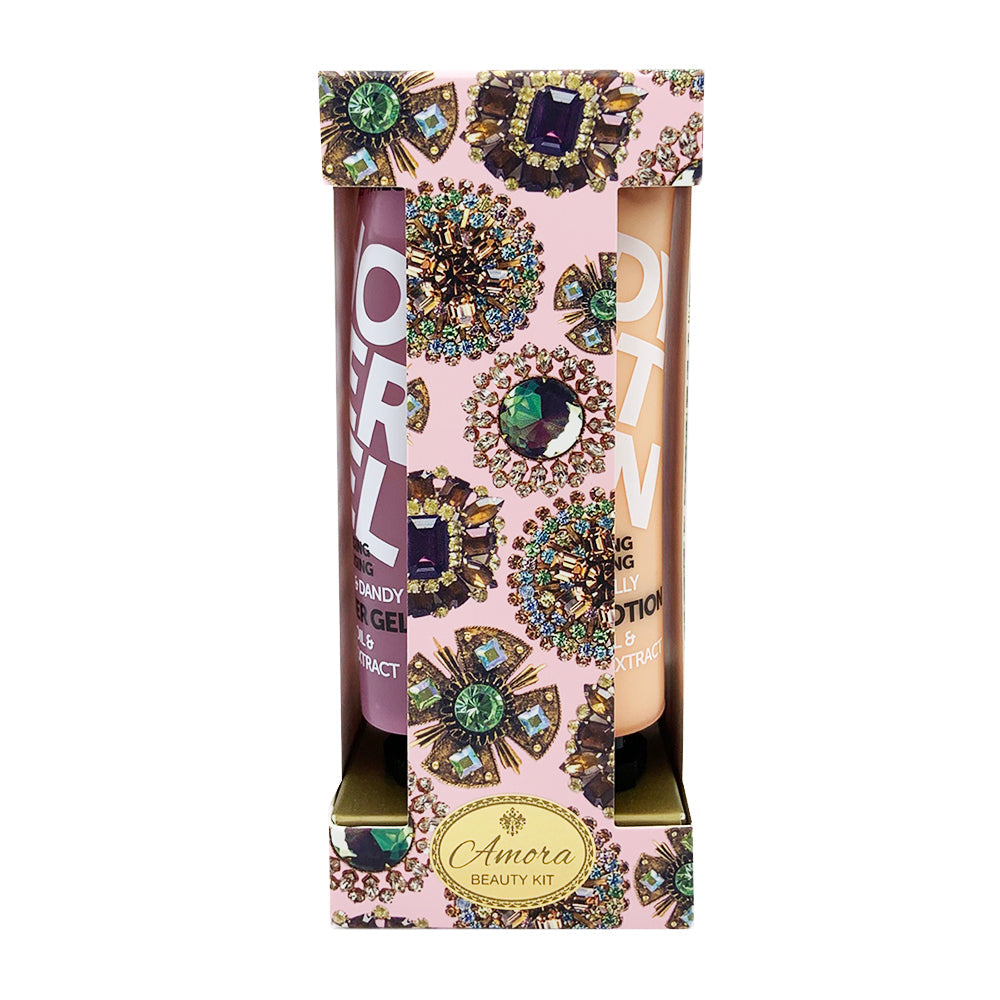 Набір: гель для душу, лосьйон для тіла, шампунь, крем для рук PRETTY & SILLY SENSUAL SILK TREE & GROOVY & DANDY AUTHENTIC COCOA