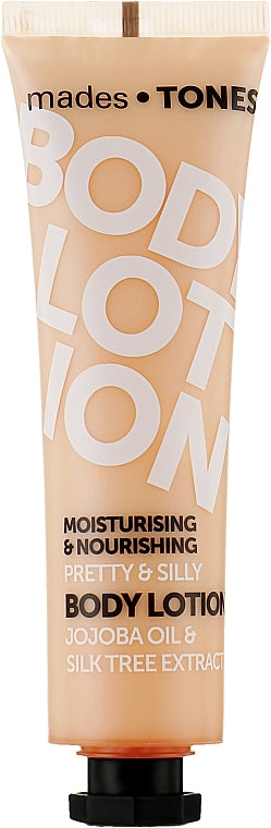 1. Вишуканий лосьйон для тіла з екстрактом шовкового дерева Pretty&Silly Body Lotion з колекції Tones від Mades Cosmetics – ідеальна доглядова б'юті знахідка, що забезпечує приголомшливий результат. Професійний продукт неймовірно зволожує та живить шкіру, стимулюючи оновлення клітинного складу епідермісу. Лосьйон має тонізуючу дію, усуває сухість і лущення, стягнутість шкірного покриву. Після застосування засобу шкіра стає м'якою і гладенькою, ніжною і шовковистою. Основні діючі речовини формули: екстракт шовкового дерева, олії жожоба, мигдалю та авокадо. Завдяки інгредієнтам природного походження у клітини епідермісу надходить необхідна кількість живильних і зволожувальних речовин, що забезпечують їх правильне функціонування. У результаті регулярного застосування лосьйону шкіра стає розкішно-бархатистою. Консистенція засобу легко і рівномірно розподіляється по поверхні шкіри і практично миттєво вбирається. Парфумерна композиція Pretty&Silly Body Lotion – це чудові ноти бергамоту і рожевого дерева, що розквітають на тілі і дарують натхненний настрій на цілий день.