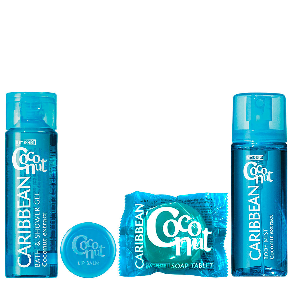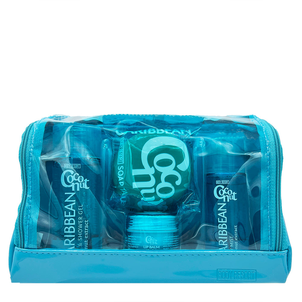 Сумочка-набір: гель для душу, спрей для тіла, бальзам для губ, мило CARIBBEAN COCONUT