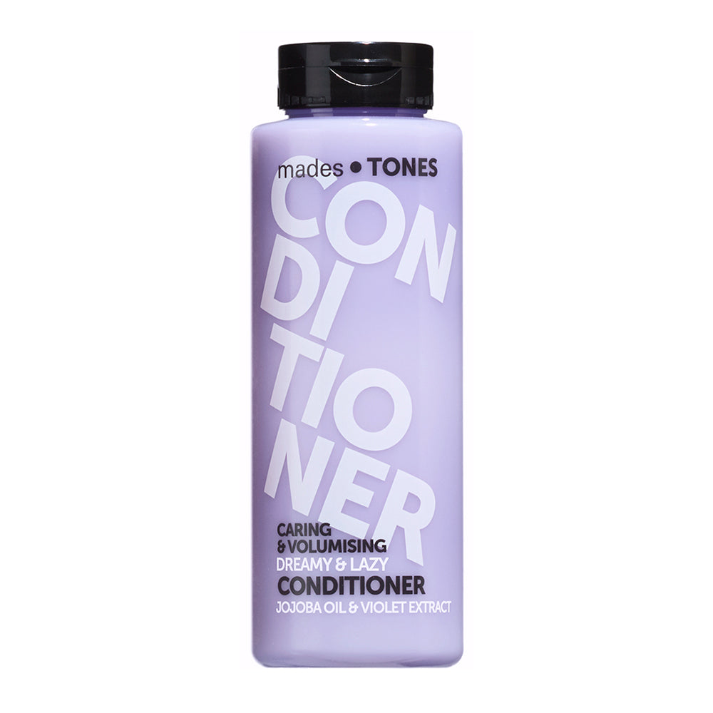 3. На вологе чисте волосся нанесіть невелику кількість кондиціонера Dreamy&Lazy Volumising Conditioner з колекції Tones від Mades Cosmetics та ретельно розподіліть по всій його довжині, потримайте кілька хвилин, потім змийте теплою водою.