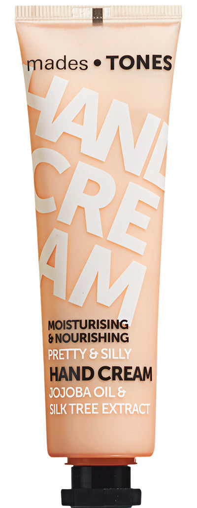 Натуральний зволожуючий крем для рук Pretty&Silly Hand Cream з колекції Tones від Mades Cosmetics з легкістю впорається з будь-якими проявами сухості шкіри. Екстракт шовкового дерева, олія жожоба та арганова олія, що входять до формули продукту, насичують дерму вітамінами та корисними мікроелементами. Додаткові апробовані активні інгредієнти посилюють дію природних екстрактів. Ніжна консистенція дозволяє наносити засіб тонким шаром, який миттєво всмоктується. Чудовий вишуканий аромат розслаблює, тонізує і зачаровує. Крем бездоганно доглядає за шкірою рук: розгладжує, зволожує, живить і захищає від зовнішніх несприятливих впливів. Засіб має протизапальні та захисні властивості, сприяє зменшенню подразнень, лущення і тріщин. Після повного всмоктування ще тривалий час має захисний вплив.