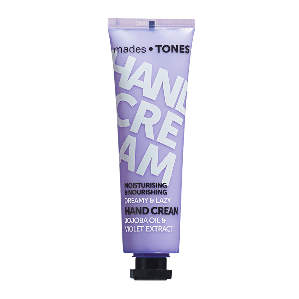 Натуральний зволожуючий крем для рук Dreamy&Lazy Hand Cream з колекції Tones від Mades Cosmetics – цінний косметичний продукт, який здатний усунути наслідки домашньої роботи, перебування на холоді, вітрі та під пекучим сонцем. Крем бездоганно доглядає за шкірою рук: розгладжує, зволожує, живить і захищає від зовнішніх несприятливих впливів. Засіб має протизапальні та захисні властивості, сприяє зменшенню подразнень, лущення і тріщин. Після повного всмоктування ще тривалий час має захисний вплив. Він глибоко зволожує і пом'якшує шкіру, даруючи відчуття комфорту, а його приємний і оригінальний аромат підніматиме настрій ще довгий час після вбирання. Екстракт фіалки лугової, олія жожоба та екстракт рисових висівок, що входять до формули продукту, пом'якшують епідерміс, насичують його корисними вітамінами і мікроелементами.
