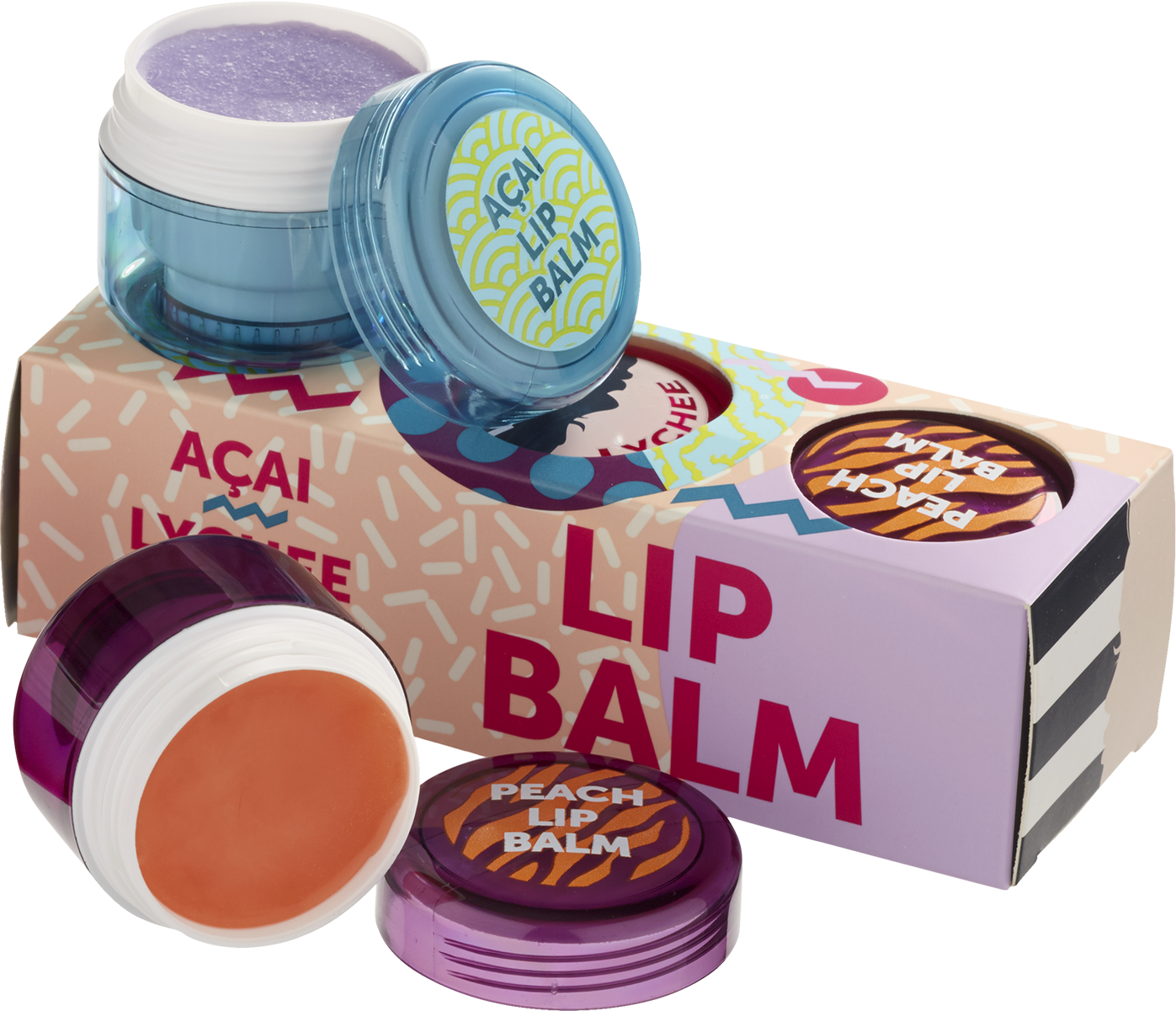 Набір бальзамів для губ: LYCHEE & PEACH & GRAPE