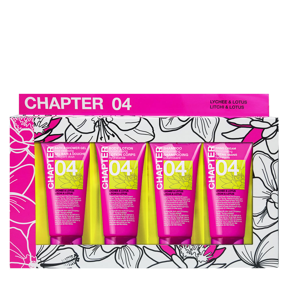 Набір для подорожей 04: гель для душу, лосьйон для тіла, шампунь, крем для рук LYCHEE & LOTUS