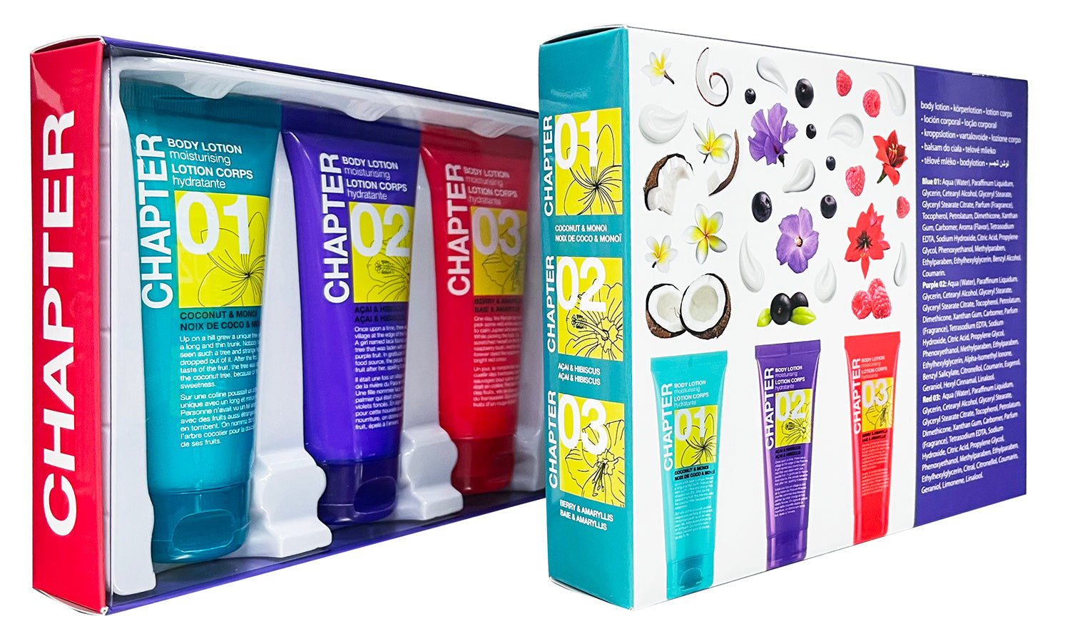Набір для подорожей 02: гель для душу x3 CHAPTER coconut & monoi / acai & hibiscus / berry & amaryllis
