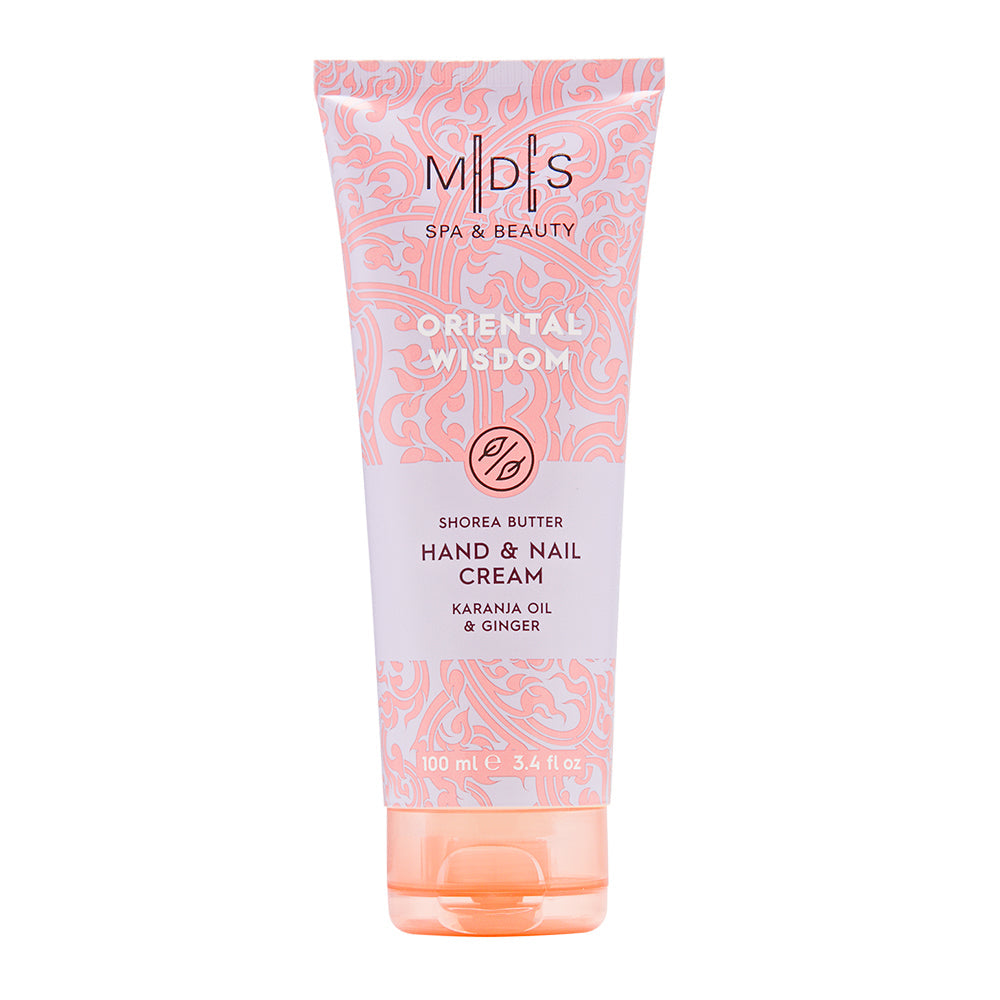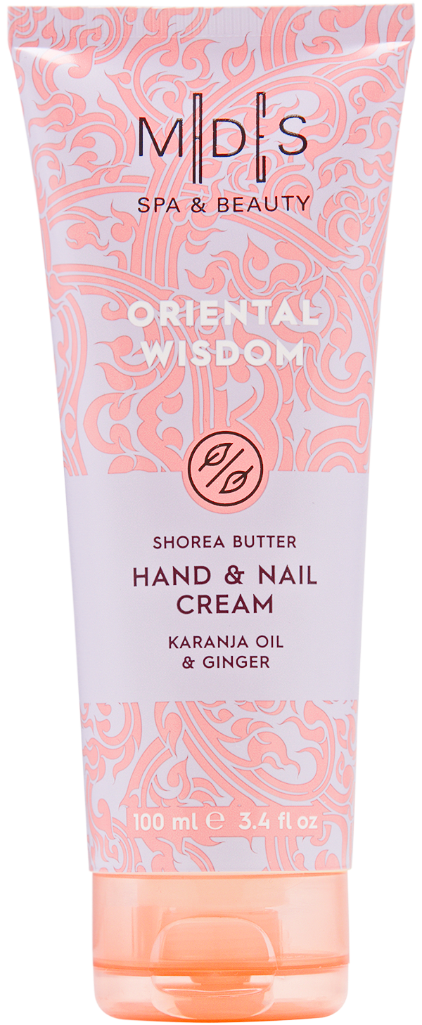 Лагідний крем для рук і нігтів Oriental Wisdom Hand & Nail Cream ("Мудрість Сходу") з колекції Spa & Beauty від Mades Cosmetics виготовлений на основі старовинних рецептів традиційної аюрведичної медицини. Засіб ретельно дбає про шкіру рук, вирізняється приємною консистенцією, миттєво вбирається і дарує розкішну шовковистість. Косметичний продукт містить комплекс цінних олій (макадамії, караньї, шореа, кокоса), який інтенсивно насичує дерму живильною вологою і корисними речовинами, делікатно заспокоює подразнені ділянки, загоює мікротріщинки і прискорює клітинну реновацію. Крім того, Oriental Wisdom Hand & Nail Cream дарує життєву силу і природний глянцевий блиск нігтьовій пластині.