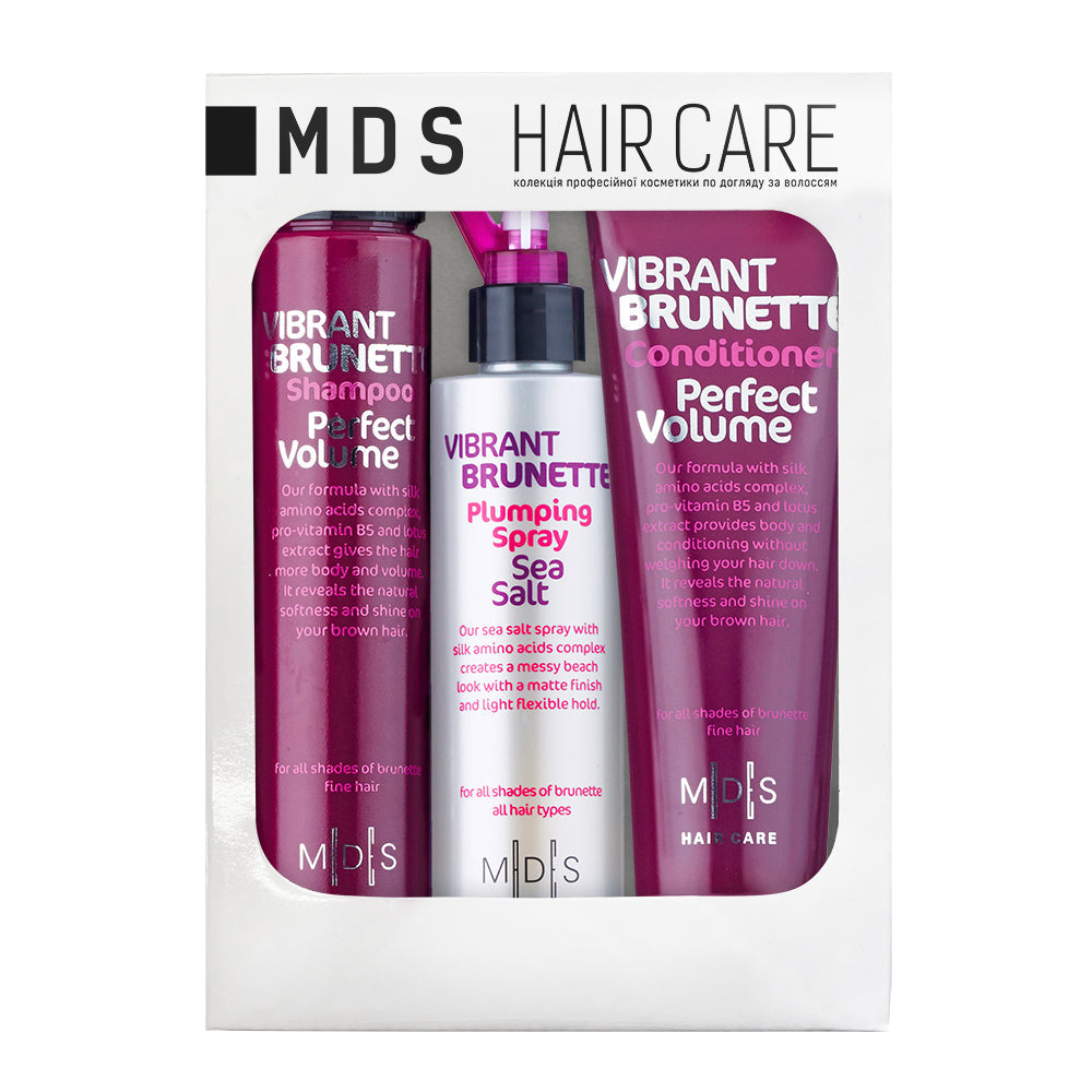 1. Неймовірний натуральний шампунь, що бездоганно доглядає за темним волоссям і надає йому ідеальний об'єм, Vibrant Brunette Perfect Volume Shampoo («Таємнича брюнетка. Ідеальний Об'єм») з колекції Hair Care від Mades Cosmetics відрізняється м'яким впливом на шкіру голови та волосся завдяки відсутності у складі агресивних компонентів. Професійний засіб має не тільки чудові очищаючі властивості, але й забезпечує навіть тонкому волоссю чудовий прикореневий об'єм. Цінність шампуню базується на неймовірних властивостях комплексу амінокислот шовку, провітаміну В5, екстрактів лотосу, хни, шовкового дерева та рожевого перцю. Vibrant Brunette Perfect Volume Shampoo допомагає відтворити здорову структуру волосся, робить його міцнішим, відчутно товщим і об'ємним. Добре зволожені, блискучі й еластичні локони з чудовим прикореневим об’ємом будуть безмежно радувати як натуральних брюнеток, так і дівчат, що досягли бажаного тону завдяки фарбуванню.