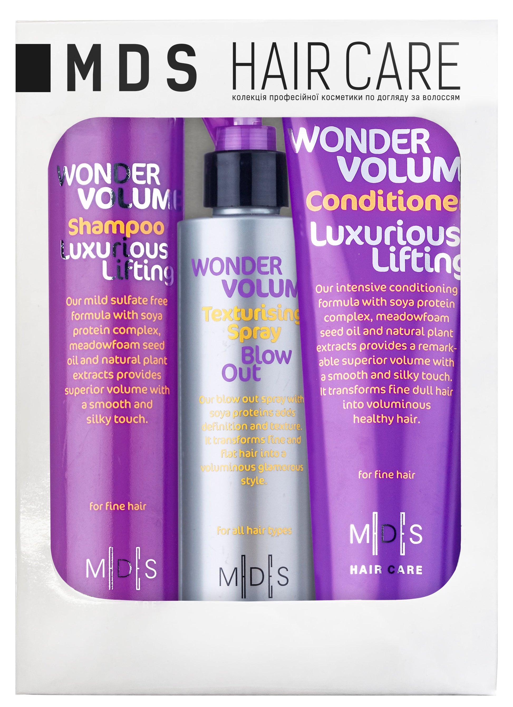 4. Щоб досягти найкращих результатів, рекомендовано продовжити догляд, використавши кондиціонер Wonder Volume Luxurious Lifting Conditioner з колекції Hair Care від Mades Cosmetics, а також завершити догляд і укладання локонів, використавши спрей для волосся Wonder Volume Texturising Blow Out Spray з колекції Hair Care від Mades Cosmetics.