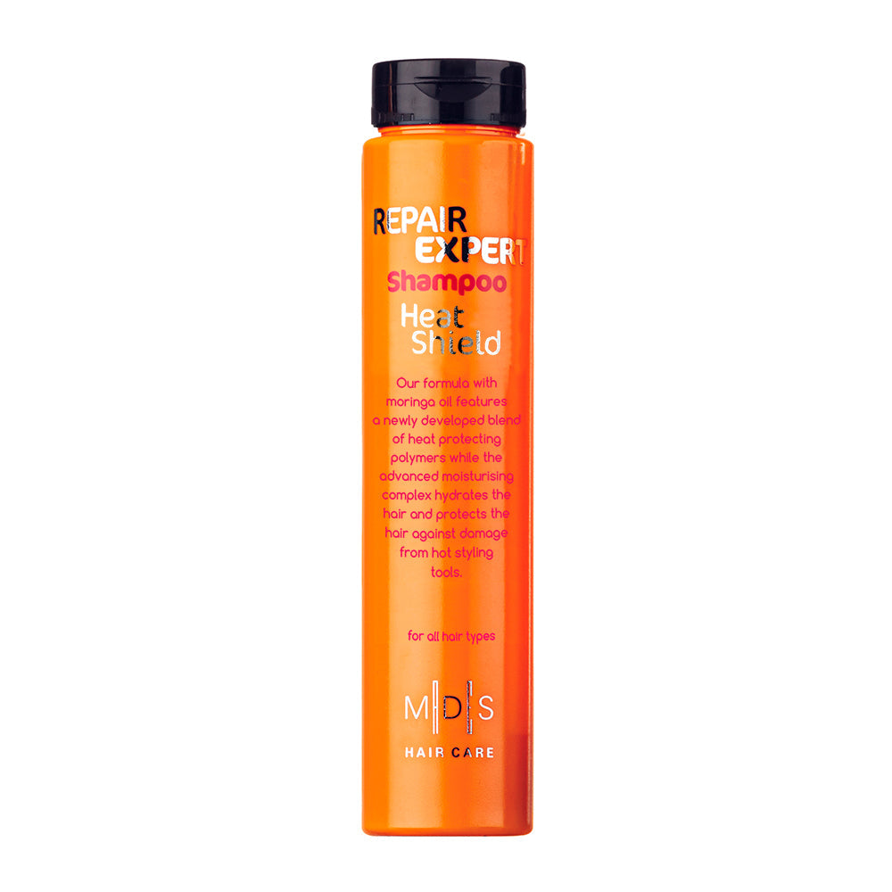 Інноваційний термозахисний шампунь Repair Expert Heat Shield Shampoo з колекції Hair Care від Mades Cosmetics – ідеальний професійний продукт, що здатен мінімізувати шкідливий вплив термо-стайлерів і допомогти зберегти гарний вигляд і здоров'я волосся. Окрім поживних цінних екстрактів і олій, шампунь містить у своєму складі спеціальну суміш теплозахисних полімерів, які збагачують пасма вологою та надійно захищають волосяні стрижні від пошкоджень під час використання термо-приладів для стайлінгу. Живильний комплекс, що міситься у формулі, дарує локонам об’єм, а також надійно захищає пасма та шкіру голови. Після застосування Repair Expert Heat Shield Shampoo волосся легко розчісується й укладається, завдяки чому створюються неймовірно привабливі образи.
