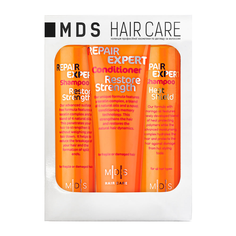 1. Натуральний безсульфатний шампунь, що відновлює міцність волосся, Repair Expert Restore Strength Shampoo («Відновлення міцності») з колекції Hair Care від Mades Cosmetics стане справжньою знахідкою для власниць ламкого, сухого, тонкого, пошкодженого волосся. Професійний засіб відрізняється м'яким впливом на шкіру голови та волосся завдяки відсутності у складі сульфатів та інших агресивних компонентів. Апробована формула збагачена кератиновим комплексом та сумішшю з 4 олій: авокадо, мигдаль, моринга олійна та олія рижію. Шампунь інтенсивно живить і зволожує пасма, ефективно відновлюючи пошкоджені ділянки волосяних стрижнів. До складу Repair Expert Restore Strength Shampoo входить кофеїн, а також екстракти алое вера та червоного чаю, що зміцнюють корені волосин і стимулюють ріст нового сильного волосся. Після застосування засобу локони легко розчісуються й укладаються, завдяки чому створюються неймовірно привабливі образи.