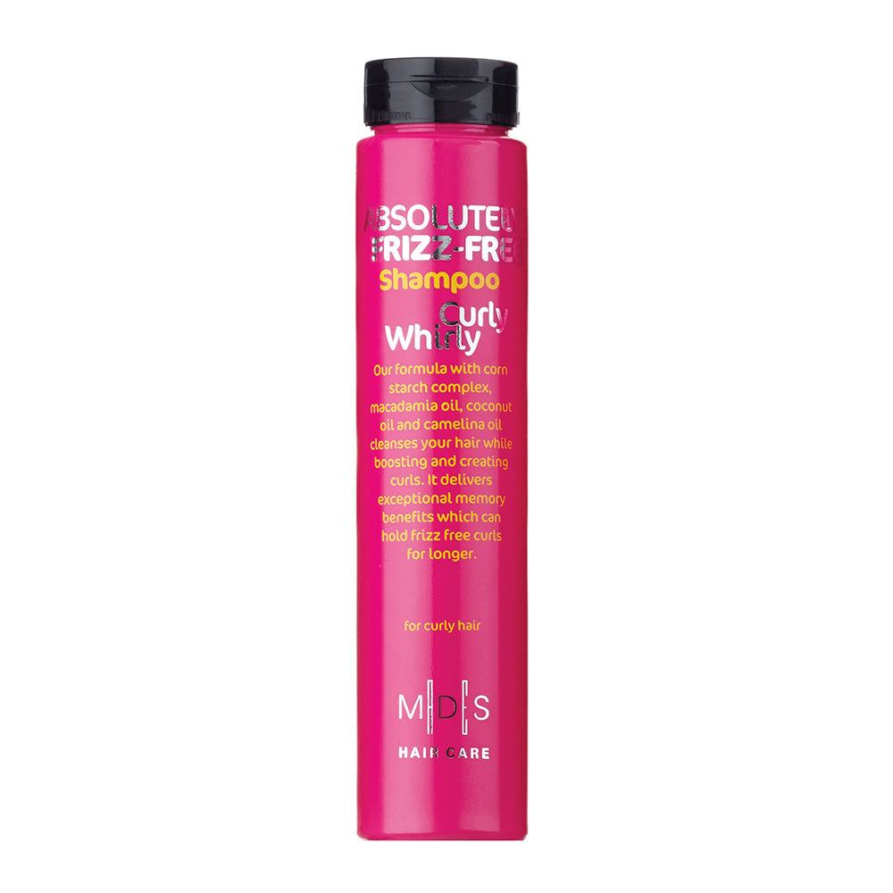 Натуральний інноваційний шампунь, що створений для кучерявого волосся, Absolutely Frizz-free Shampoo Curly Whirly («Пружний локон») з колекції Hair Care від Mades Cosmetics стане справжньою знахідкою для власниць грайливих завитків. Професійний засіб забезпечує локонам ефективний догляд, дбайливо піклуючись про кожну волосинку. Це ідеальний вибір для щоденного застосування – шампунь чудово очищує волосся від забруднень та залишків стайлінг-засобів, робить його слухняним та еластичним. До складу б'юті-продукту входять: кукурудзяний крохмаль, рижієва олія, олії жожоба, кокосу та горіха макадамії. Діючи у комплексі, цілющі компоненти зволожують волосся, надають йому яскравого блиску і дарують неймовірну пружність завиткам. Апробована формула «запам'ятовує» форму кожного локону і зберігає її протягом усього дня, не допускаючи розпушування.
