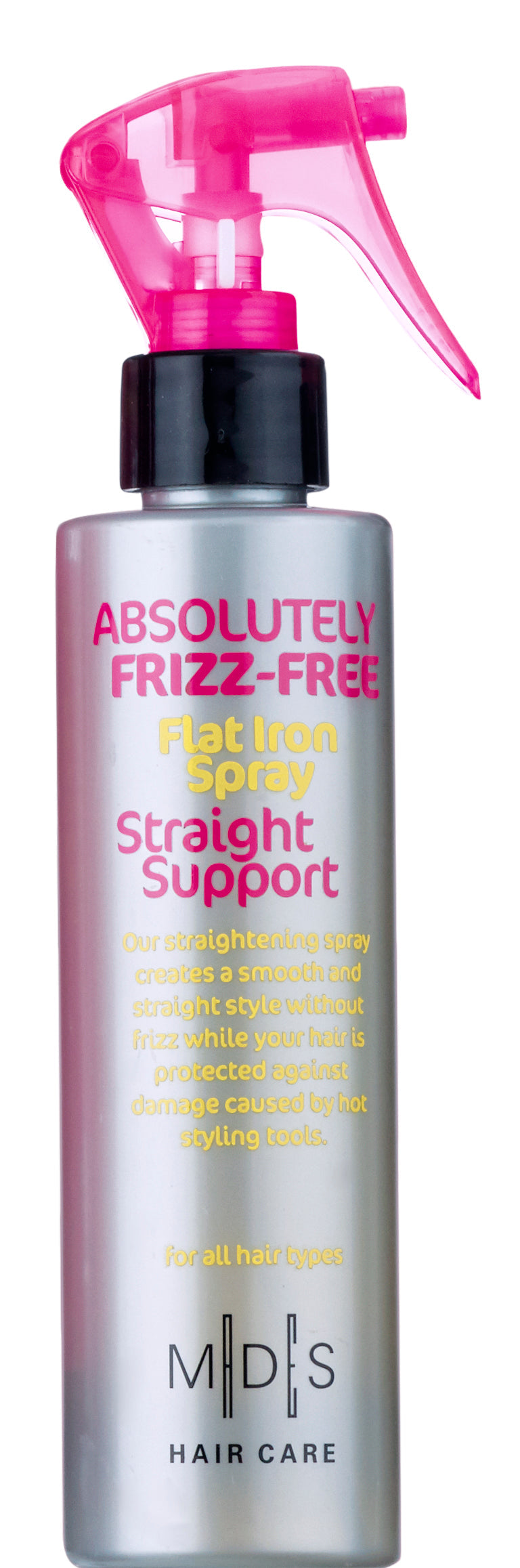 3. Дивовижний спрей, що робить волосся прямим і слухняним, Absolutely Frizz-Free Straight Support Spray з колекції Hair Care від Mades Cosmetics не обтяжує волосся і не склеює його. Засіб чудово розплутує пасма, запобігаючи пошкодженню структури волосяних стрижнів і появі посічених кінчиків. Професійний спрей миттєво створює стильні ефектні укладки, а також забезпечує пасмам якісний захист від негативного впливу агресивних зовнішніх чинників, зокрема від термовпливу стайлінгових приладів. Формула збагачена кукурудзяним крохмалем (максимально мінімізує сплутування волосся), кокосовою олією, олією жожоба та рижієвою олією, екстрактом огірка. Засіб дарує пасмам оптимальне зволоження та живлення, полегшує розчісування та забезпечує волосяні стрижні цілющим провітаміном В5. Absolutely Frizz-Free Straight Support Spray містить у своєму складі систему теплового захисту, що оберігає пасма від руйнівного впливу гарячих інструментів для укладання. Після застосування інноваційного спрею волосся стає м'яким, слухняним, прямим і набуває гарного, здорового блиску.