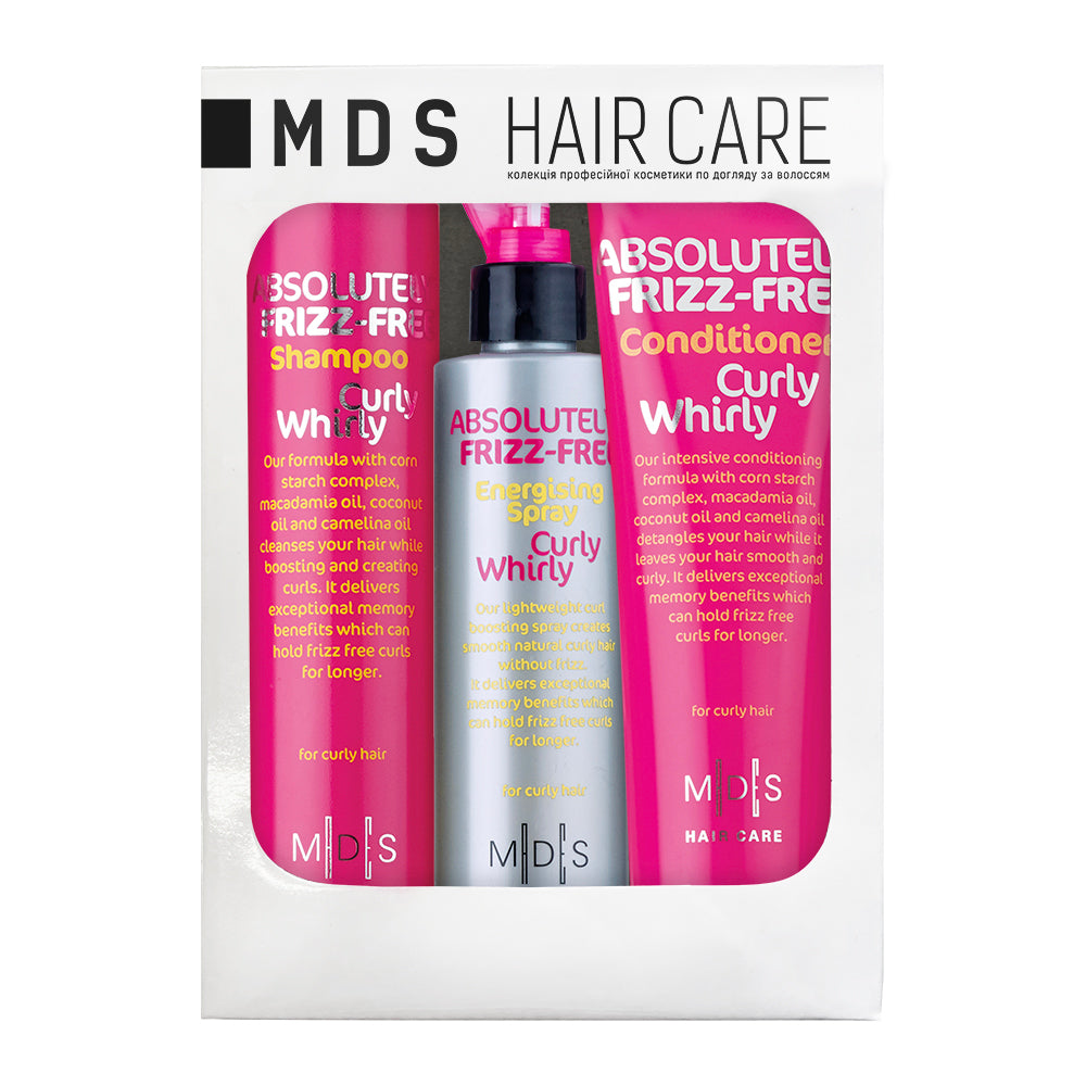 1. Натуральний інноваційний шампунь, що створений для кучерявого волосся, Absolutely Frizz-free Shampoo Curly Whirly («Пружний локон») з колекції Hair Care від Mades Cosmetics стане справжньою знахідкою для власниць грайливих завитків. Професійний засіб забезпечує локонам ефективний догляд, дбайливо піклуючись про кожну волосинку. Це ідеальний вибір для щоденного застосування – шампунь чудово очищує волосся від забруднень та залишків стайлінг-засобів, робить його слухняним та еластичним. До складу б'юті-продукту входять: кукурудзяний крохмаль, рижієва олія, олії жожоба, кокосу та горіха макадамії. Діючи у комплексі, цілющі компоненти зволожують волосся, надають йому яскравого блиску і дарують неймовірну пружність завиткам. Апробована формула «запам'ятовує» форму кожного локону і зберігає її протягом усього дня, не допускаючи розпушування.