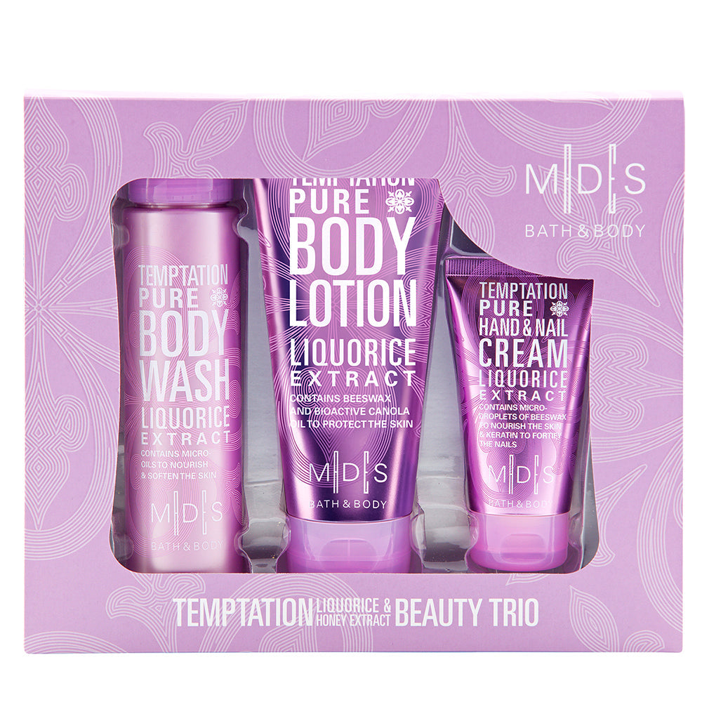 Подарунковий набір: гель для душу, лосьйон для тіла, крем для рук та нігтів ЛАКРИЦЯ