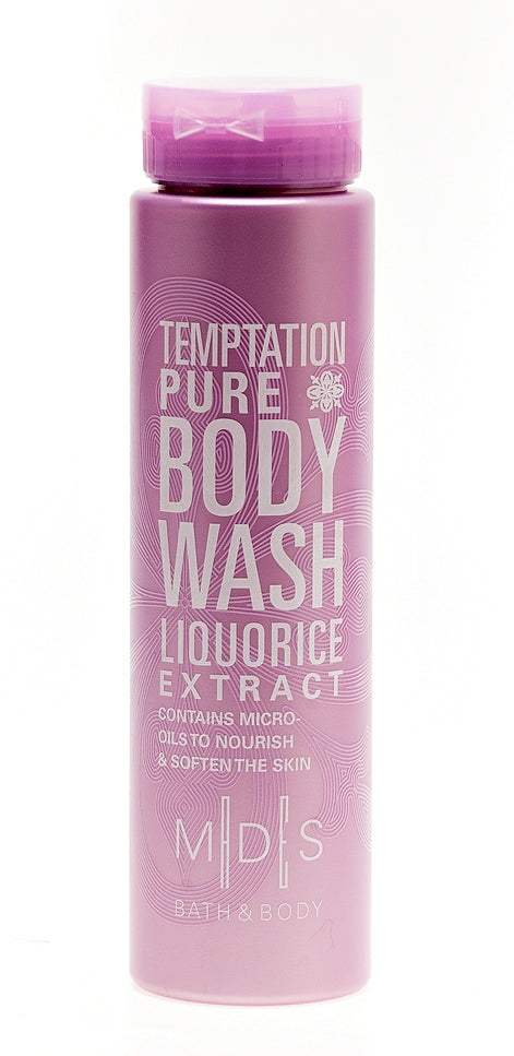 1. Чуттєвий освіжаючий гель для душу з екстрактом лакричнику Temptation Pure Body Wash Liquorice Extract з колекції Bath & Body від Mades Cosmetics – розкішний, поживний засіб, наділений спокусливим ароматом, а також яскраво вираженими зволожувальними, живильними та ранозагоювальними властивостями. Дивовижна б'юті-знахідка має м'яку гіпоалергенну формулу, яка дбайливо очищає шкірний покрив від забруднень і запобігає виникненню подразнення. Засіб не містить у своєму складі барвників і штучних ароматизаторів, тому його можна застосовувати для догляду за шкірою будь-якого типу, навіть за чутливою. Цілющі властивості гелю ґрунтуються на дії суміші живильних олій, провітаміну В5, бджолиного воску, а також екстрактів лакричнику, лотосу та глоду. Завдяки дії цих компонентів шкіра насичується цінними речовинами й отримує необхідний догляд. У кожній мікро-капсулі б'юті-засобу містяться цінні речовини, які чудово живлять шкіру та забезпечують їй дбайливу турботу. Гель чудово піниться і ніжно торкається шкіри, надаючи ефективну, але делікатну очищувальну дію, не порушуючи природний баланс зволоженості епідермісу. Професійний продукт оточує тіло особливим ніжним ароматом.