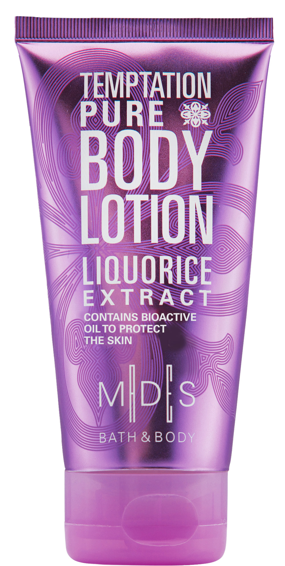 2. Вишуканий зволожуючий лосьйон для тіла з екстрактом лакричнику Temptation Pure Body Lotion Liquorice Extract з колекції Bath & Body від Mades Cosmetics забезпечує догляд за шкірою усіх типів, але особливо корисним буде для сухої шкіри. Інноваційний засіб вирізняється м'якою, легкою консистенцією та спокусливим ненав'язливим ароматом. Лосьйон швидко вбирається, не залишаючи жирних або липких слідів на тілі, насичує шкіру живильною вологою та корисними речовинами, підтримуючи оптимальний рівень зволоження. Особлива косметична формула розроблена на основі бджолиного воску, арганової та касторової олій, екстракту лакричника, а також олії з виноградних кісточок. Завдяки потужним активним інгредієнтам у складі, шкіра швидко стає надзвичайно м'якою, гладенькою та сяйною, підвищується її пружність і еластичність. Temptation Pure Body Lotion Liquorice Extract не містить силіконів, мінеральних олій і агресивних консервантів. Чуттєвий засіб оточує тіло запашним вишуканим ароматом, що дарує енергійний заряд свіжості і легкості на цілий день.