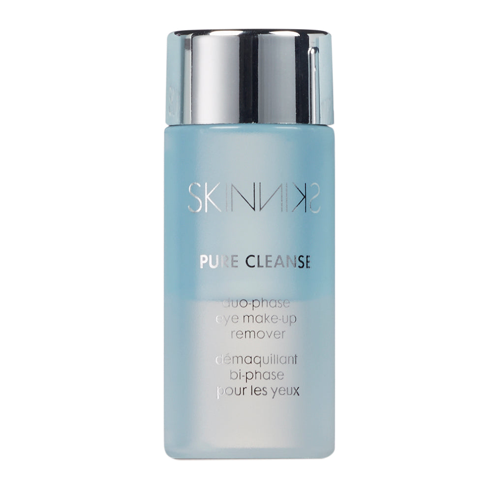 Двофазний засіб для зняття макіяжу з очей Duo-phase Eye Make-up Remover з колекції Pure Cleanse серії Skinniks від Mades Cosmetics легко, професійно та делікатно очищує шкіру навколо очей від залишків косметики і забруднення. Продукт збагачений багатьма зволожувальними і захисними компонентами, ефективно очищує дерму та насичує тканини корисними мікроелементами. Завдяки вмісту у складі льодовикової води, насичує шкіру і робить її пружною та шовковистою. Засіб дбайливо доглядає за ніжною шкірою повік, усуваючи дрібні зморшки і прибираючи «темні кола».